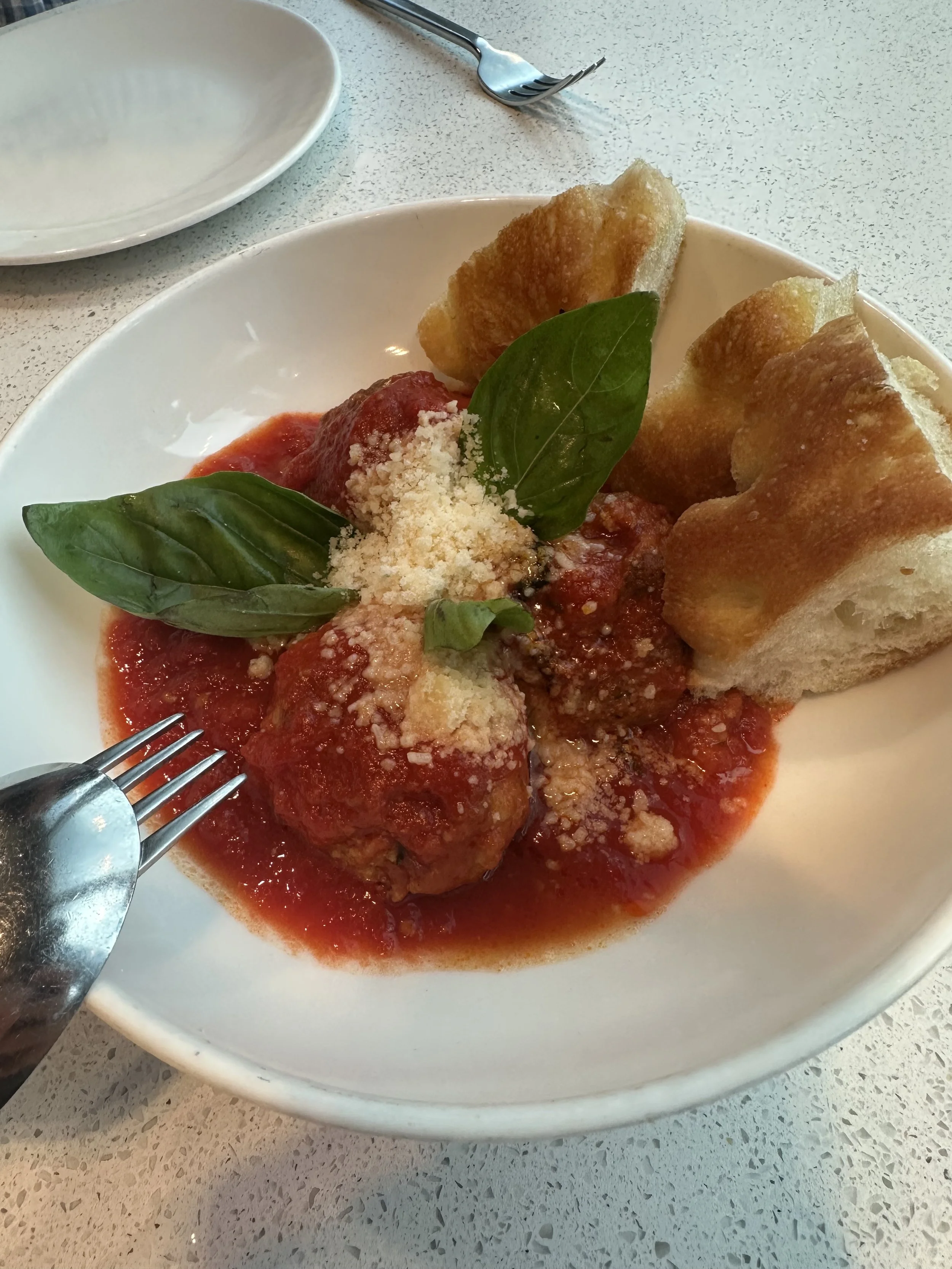 The meatball stood out — flavorful, well-seasoned, and paired with a rich, freshly tasting tomato sauce (and I’m picky about sauce).